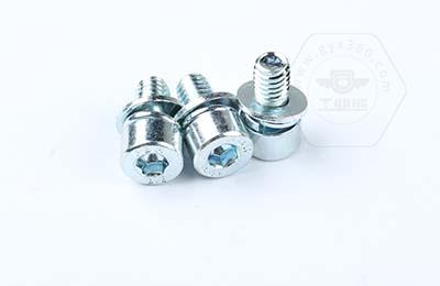 8.8級(jí)鍍環(huán)保藍(lán)白鋅 內(nèi)六角不滾花圓柱頭帶平彈墊組合螺釘