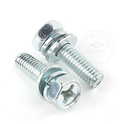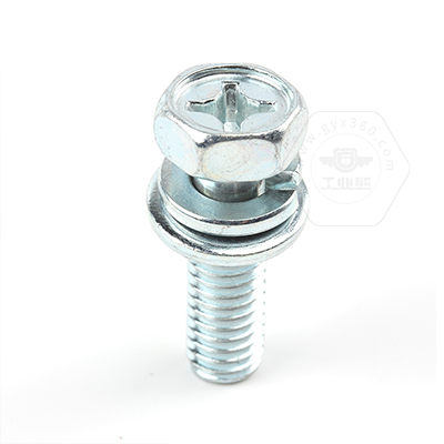 工業(yè)熊碳鋼8.8級藍(lán)白鋅48h十字槽凹穴六角頭帶平彈墊組合螺釘GB9074.13