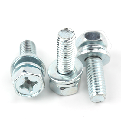 • 工業(yè)熊碳鋼8.8級藍(lán)白鋅48h十字槽凹穴六角頭帶平彈墊組合螺釘GB9074.13